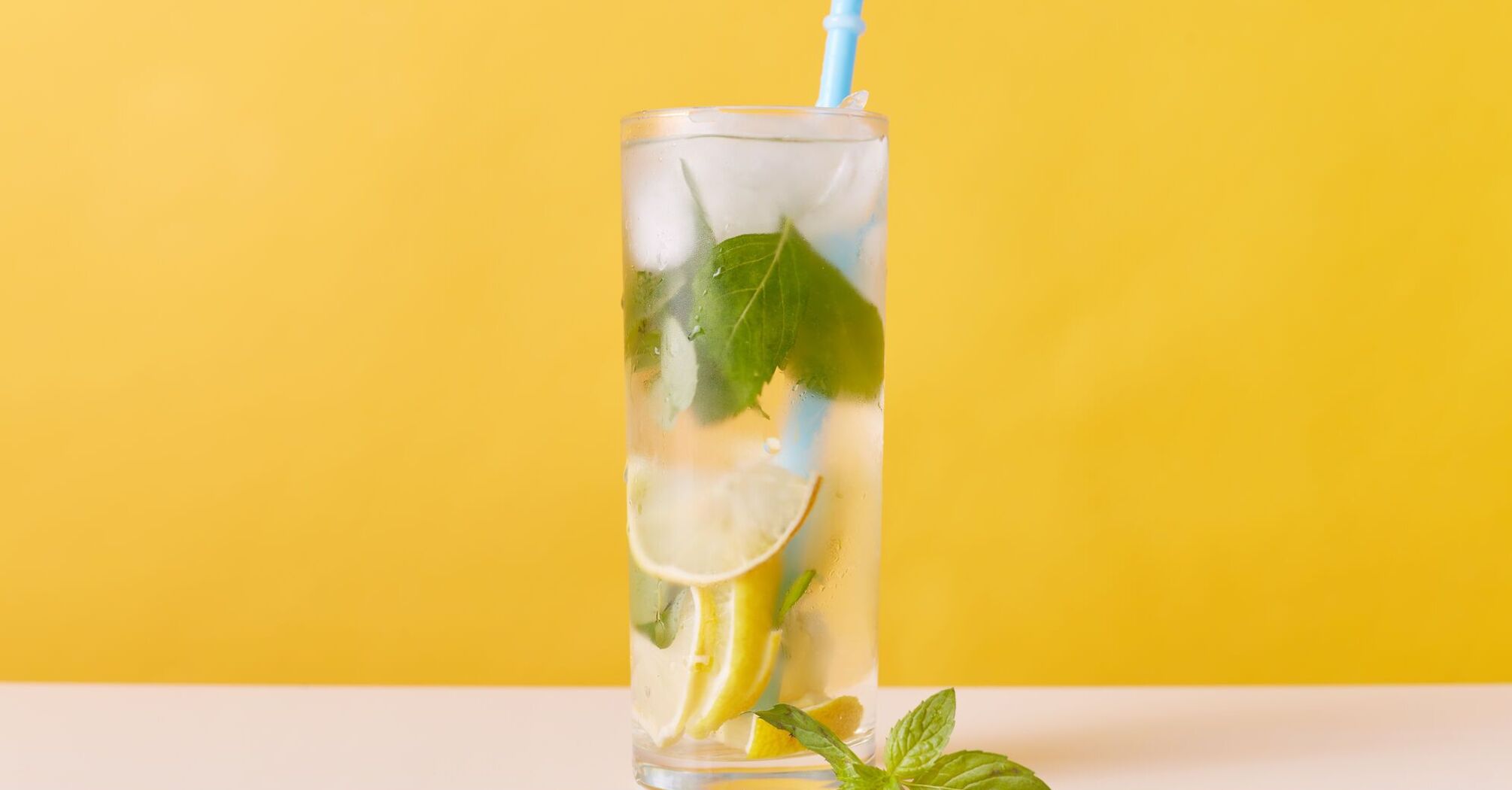 2. Add ice, mint, lime or lemon, chilled syrup and the juice of a whole squeezed lemon or lime.