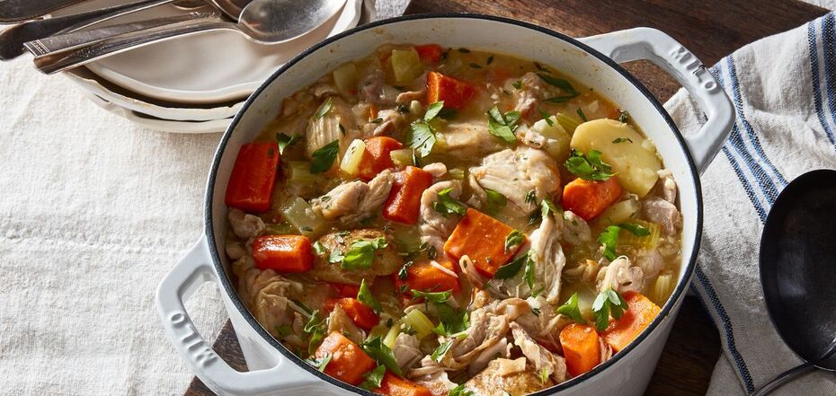 These potatoes are called "wet" because they are stewed with a lot of other vegetables. They give off plenty of juice and a very pleasant spicy flavor. The dish is very satisfying.