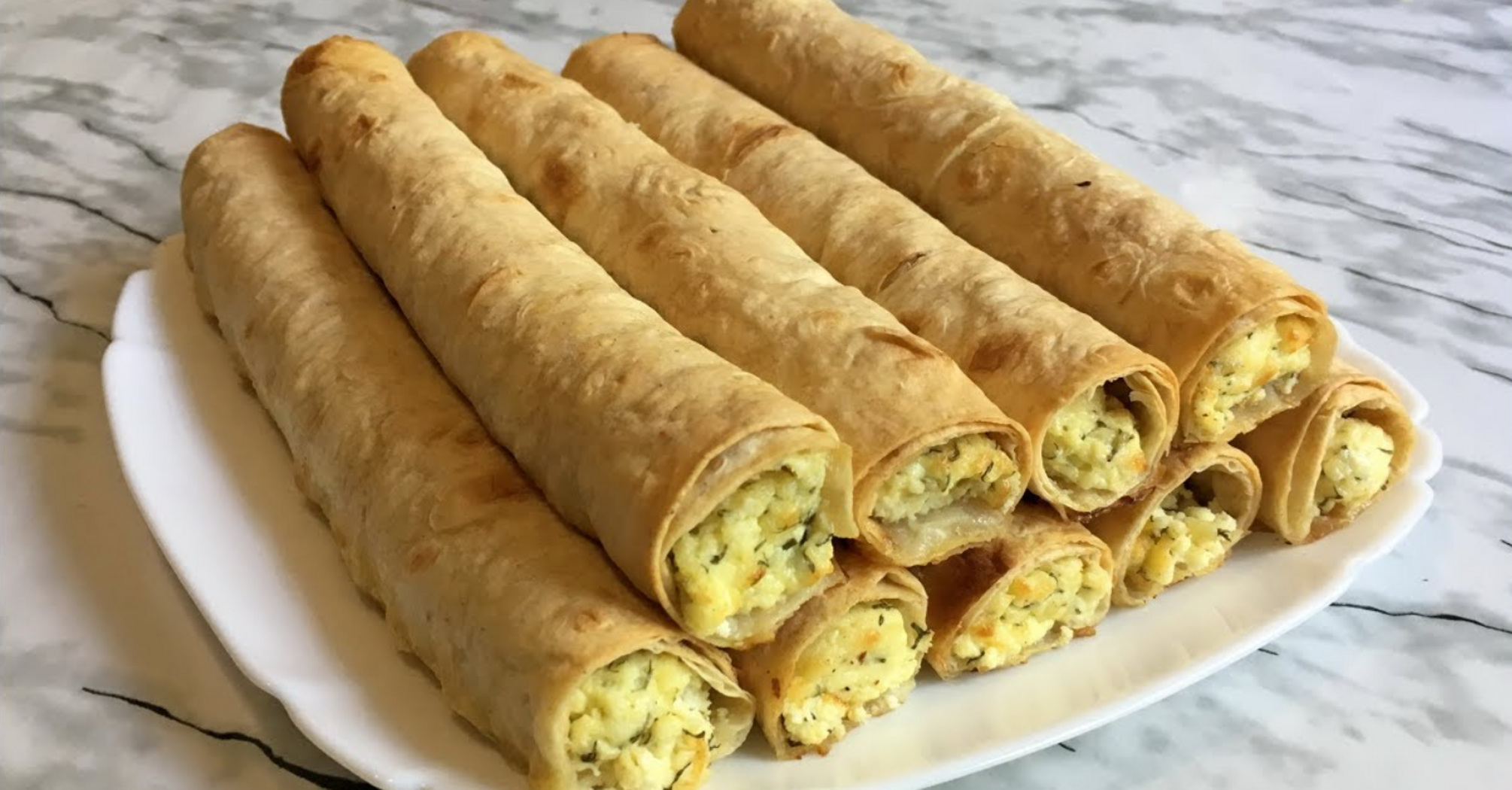 Cheese-filled pita bread tubes are a dish that is ideal for both breakfast and snacking. And thanks to its compact form and ease of consumption, it can also be taken on the go.