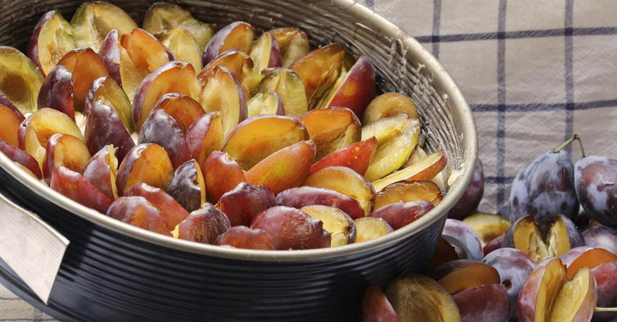 4. Prepare the plums: wash them and remove the pits.