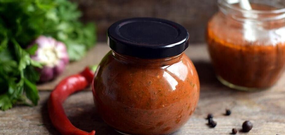Homemade adjika can be eaten both raw and cooked, and it can be made very spicy if you like, with sweet peppers and carrots.