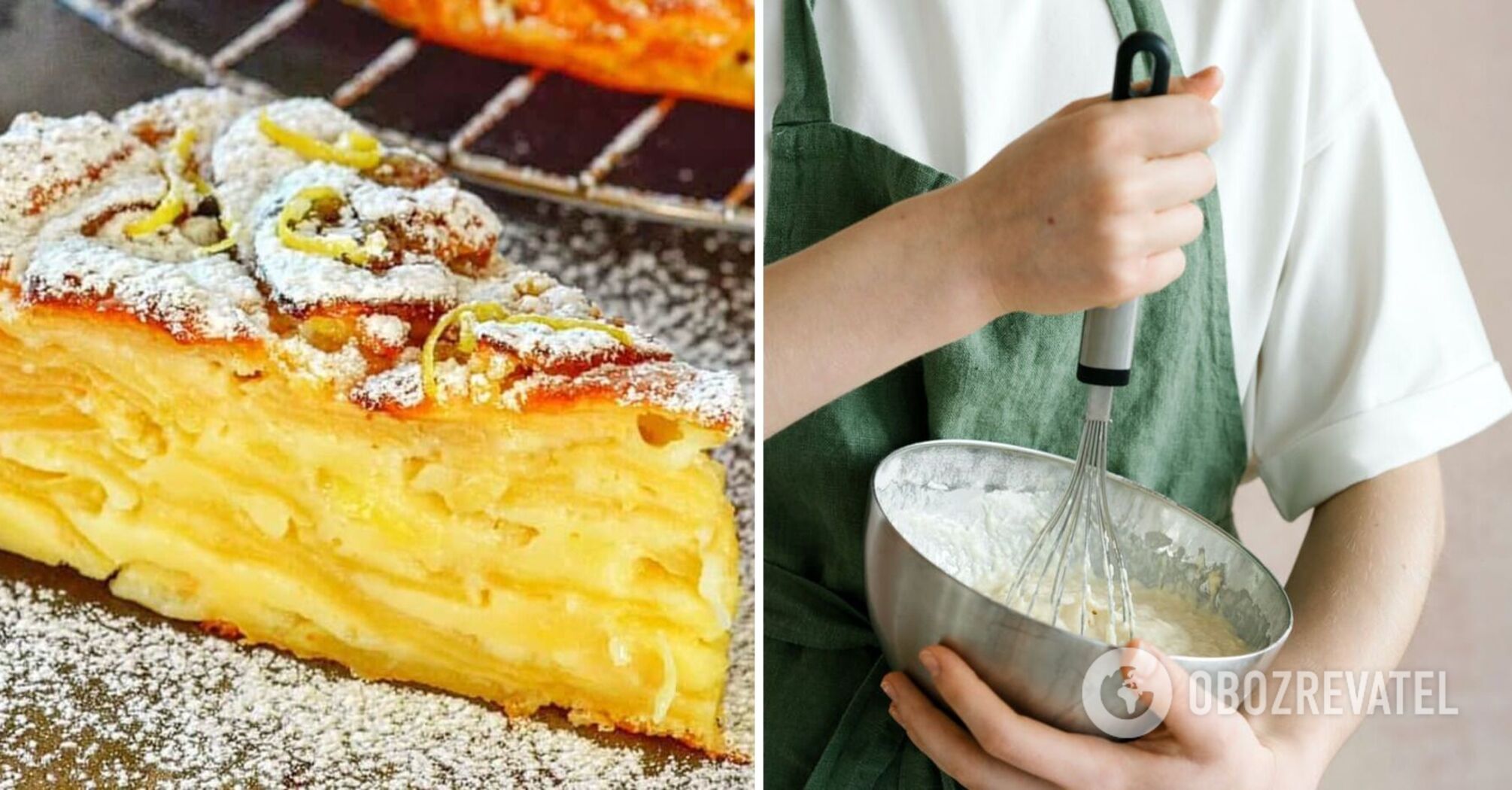 The idea for the pie was shared by kniga_pekarya_ on her Instagram page. The blogger adds a little alcohol to the dough, so it flakes and becomes like a puff pastry.