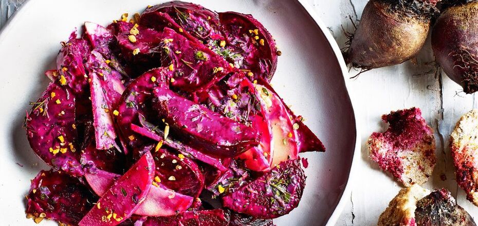 A traditional salad usually prepared with boiled beets is Shuba. This dish is more popular in winter. And if you want to make a salad with fresh beets in the summer, you should use the following recipe idea: replace herring with red fish, mayonnaise with balsamic cream, and add a few more simple and healthy ingredients.