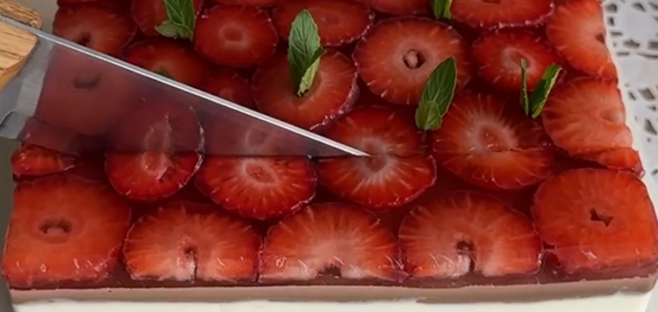 The idea of making an apple dessert with strawberries without baking was published on the Instagram page of food blogger Natalia with the nickname smak_nata. It turns out to be a full-fledged festive cake.