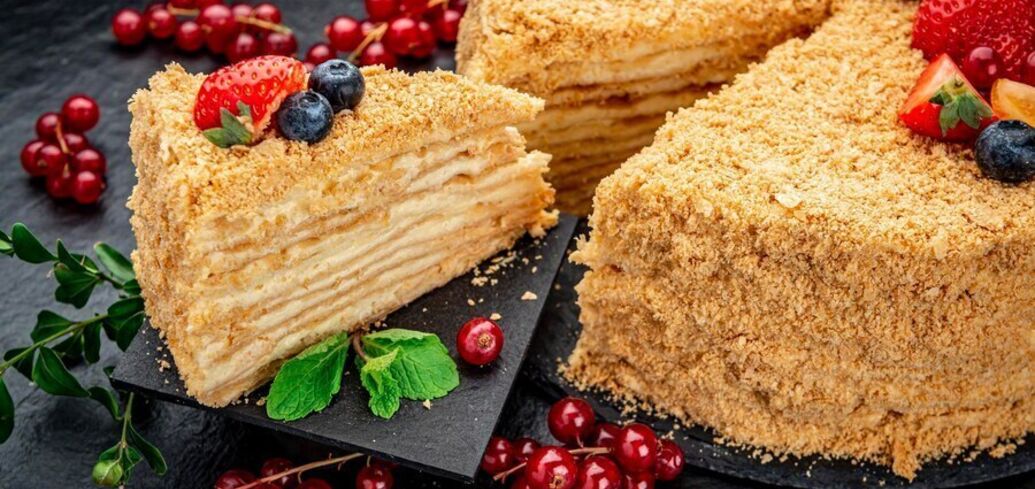 One of the simplest and most delicious cakes is Honey cake, which is based on honey cakes and delicate sour cream. To make the cake not too sweet, add lemon zest or sweet and sour jam to the cream.