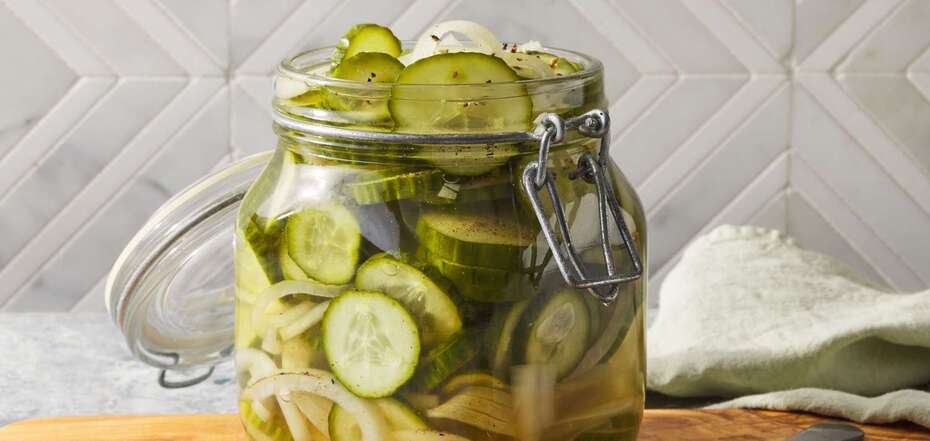 1. Cut cucumbers into circles, onions into half rings.