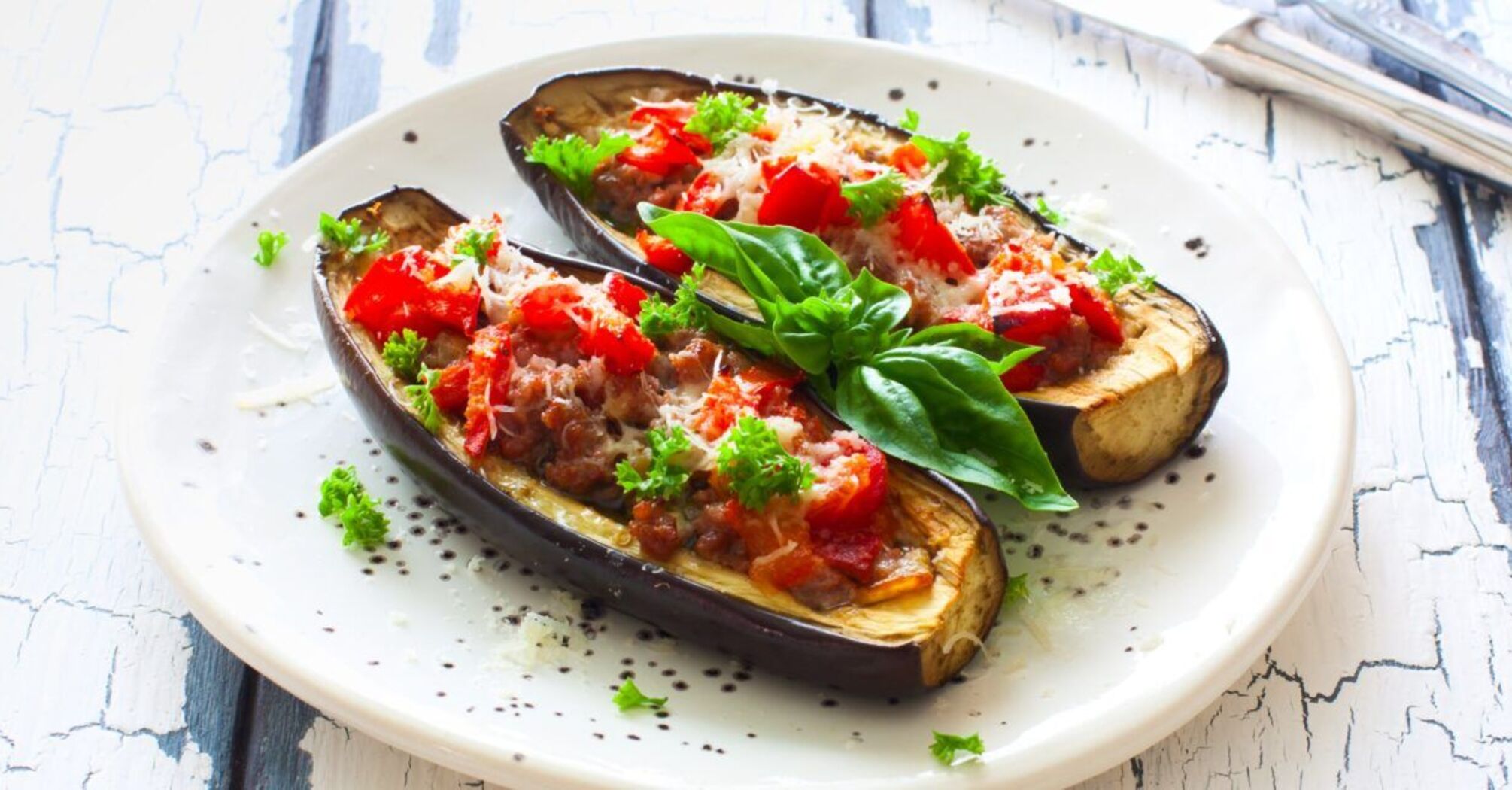 Tastier than meat: eggplant with fried cheese and tomatoes