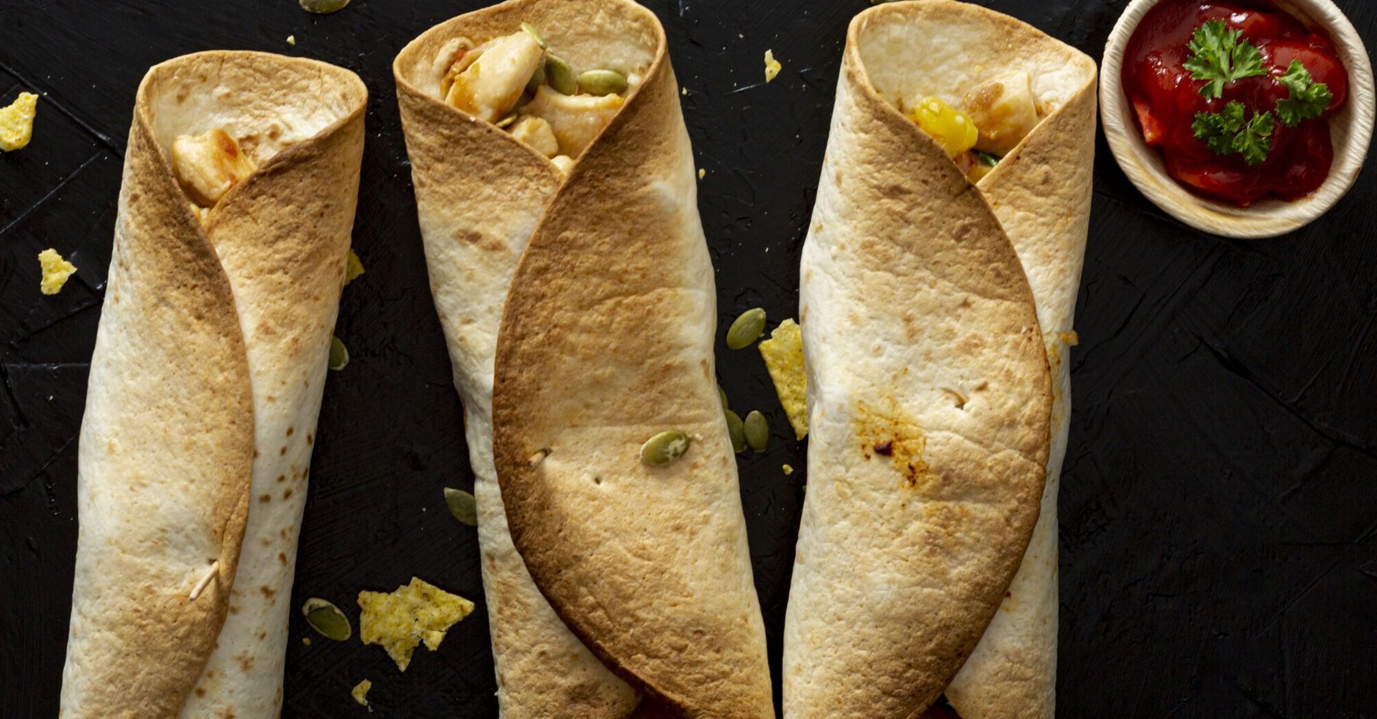 1. Cut pita bread or tortilla in half and wrap each part into a cone, securing the edges with a beaten egg.