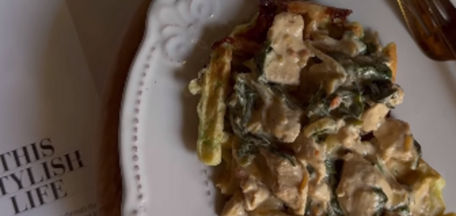 Turkey with spinach in cheese sauce on a zucchini waffle is exactly what you need for a healthy snack in the summer. A food blogger with the nickname vika marchenko shared on Instagram how to prepare this dish.