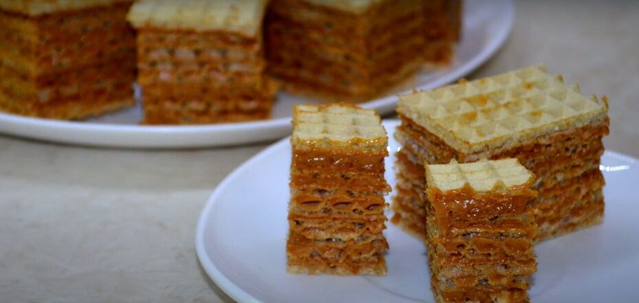 The classic version of a wafer cake is made with condensed milk cream. To make a new take on the dessert, you can add chocolate frosting, nuts, and cookies.
