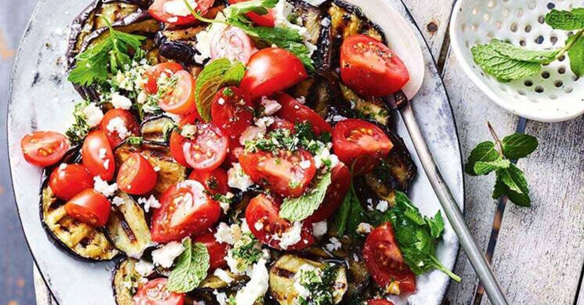 Warm eggplant salad with tomatoes and nuts: a recipe for a hearty dish