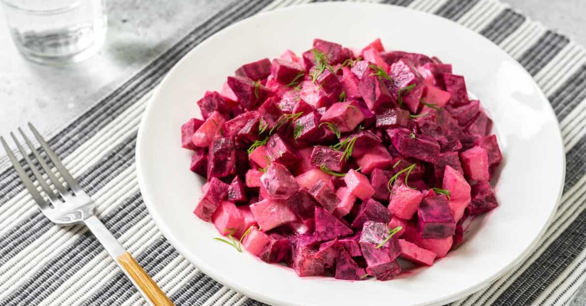 If you don't have time to prepare the classic Dressed herring, you can make a much simpler salad from boiled beets. The vegetable goes well with veal meat, pickled cucumbers, and onions.