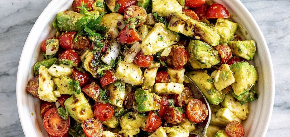 Summer is a time for light and nutritious vegetable salads. You can use olive oil and lemon juice for the dressing instead of mayonnaise. Avocado is a great choice for the base.