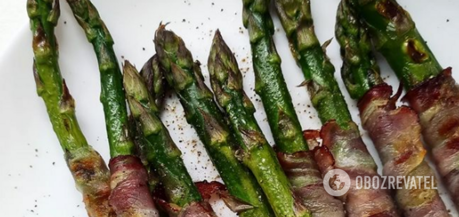 Asparagus is extremely dietary, nutritious and healthy, so you can safely add it to your diet. The relatively neutral taste of the product should be complemented with bright notes, and bacon is ideal for this. The result is a complete dish that can be served in completely different ways, depending on the method of heat treatment.