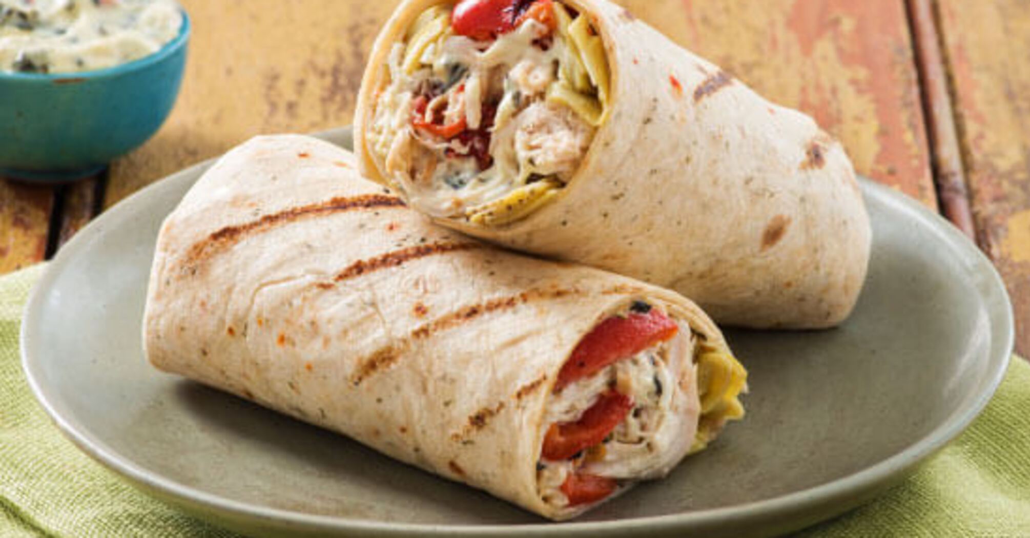 2. Wrap the pita bread and fry on a well-heated frying pan or grill until golden brown.