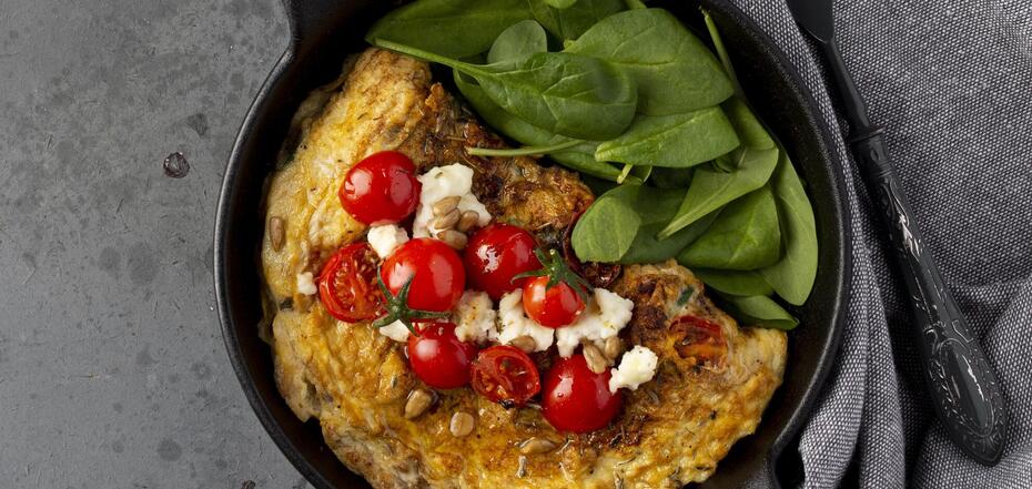 1. For the pancake: beat eggs with salt, add oatmeal, and pour the mixture into a hot frying pan greased with butter.