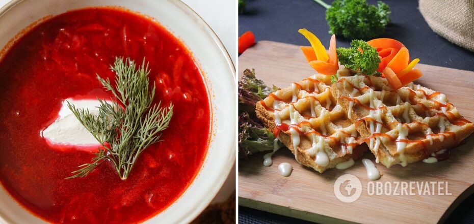 Traditionally, waffles are served as a sweet dessert with cream and fruit. However, they can also be made savory. This dish will taste perfect with red borscht. It is a great alternative to bread and garlic buns.