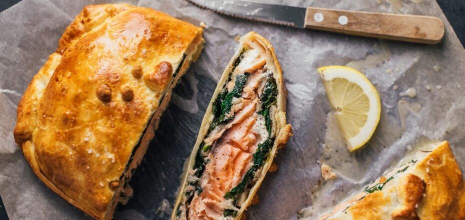 Baked red fish with spinach in puff pastry is a dish that will be a great addition to a festive table. You can choose trout or salmon according to your taste. And to make the puff pastry golden brown, don't forget to brush it with an egg.